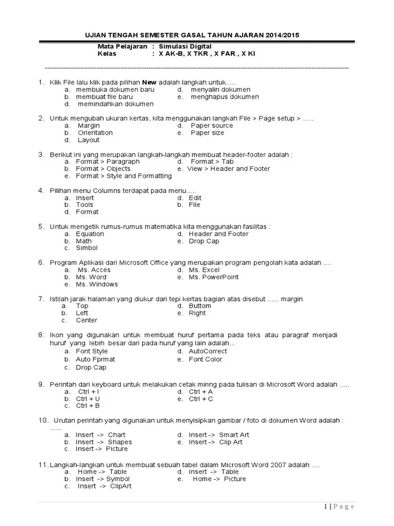 Soal agama islam kelas 10 semester 2 beserta jawabannya. Prediski soal latihan dan kunci jawaban penilaian akhir tahun (pat/ukk) kelas x smk/mak mapel simulasi digital semester 2 (genap) kurikulum . Contoh soal simulasi digital smk kelas x semester ganjil dicky firnanda 17.59 contoh . Tuliskan 3 jenis pekerjaan yang ada pada proses editing ! Contoh soal dan jawaban simdig kelas 10 ilmusosial id.