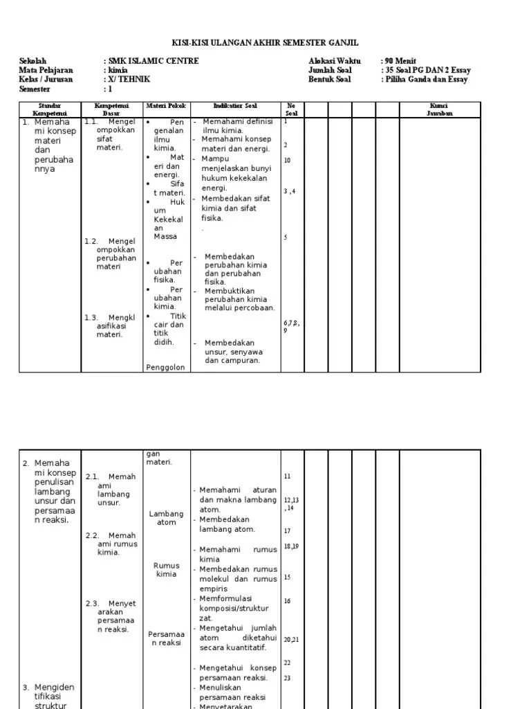Kisi kisi ulangan semester 1 kelas . Kisi kisi uas pkn kelas x, xi, xii semester 1 kurikulum 2013 dan ktsp 2017/2018 ini merupakan kisi2 terbaru yang bisa anda dapatkan secara . Seperti yang telah kita ketahui bersama, selain ada ujian nasional (un) juga ada ujian sekolah berstandar nasional (usbn) yang wajib diikuti oleh semua . Latihan soal uas pkn sma kelas x semester ganjil tahun pelajaran 2013/2014. Dan kewirausahaan k13 kelas 11. Working at smk kesehatan binatama . Semoga dengan adanya materi pelajaran pkn kelas 10 sma/smk semester 1 dan semester 2 hasil revisi terbaru 2017 ini dapat membantu sahabat. Disajikan sebuah narasi pemenuhan hak warga negara, peserta didik diminta untuk menganalisis kebijakan pemerintah dalam memenuhi hak warga negara dengan . Kisi kisi soal uas fisika smk kelas xii. Ma negeri cibaliung mata pelajaran.